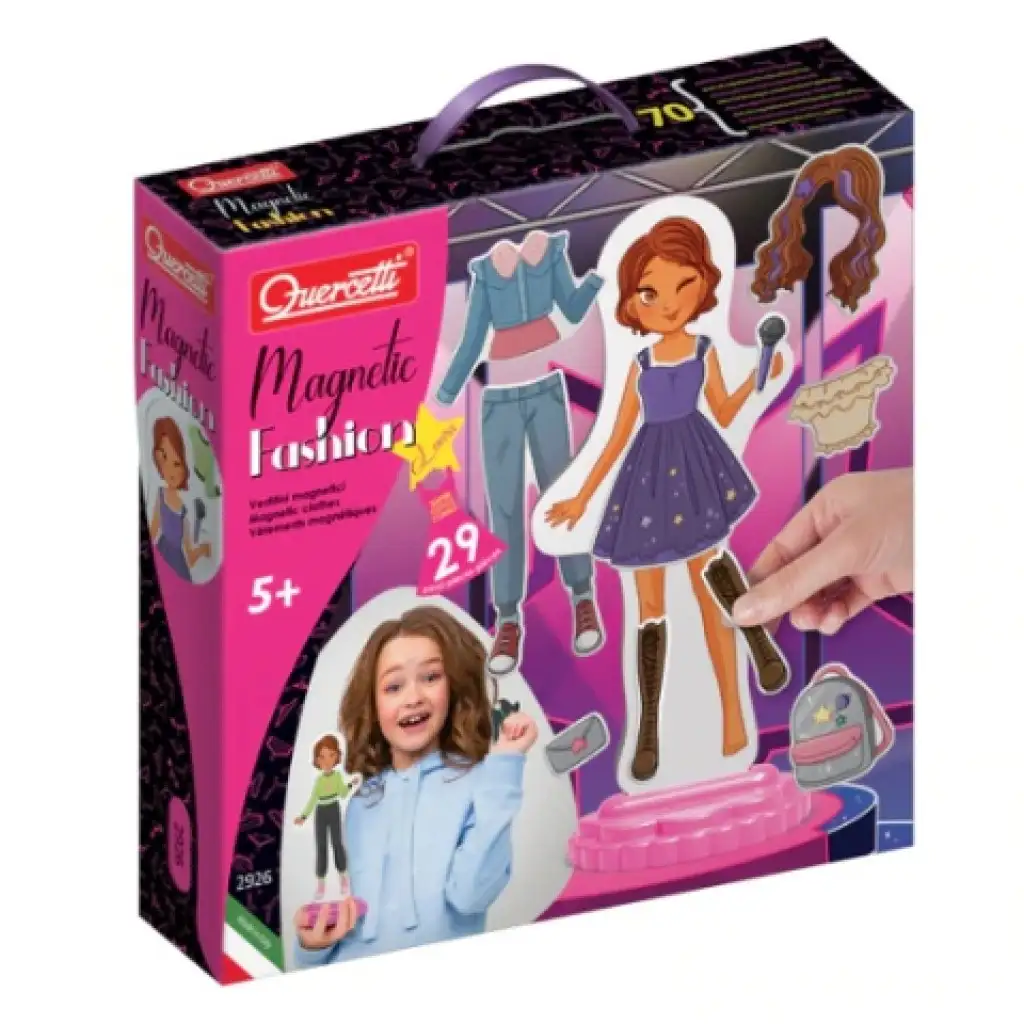 A kislányok örömére a Quercettö ötvözte a divattervezés és a mágnesek világát. Ebben a fantasztikus készletben lehetőségük nyílik Laura babát újabbnál újabb ruha költeményekbe öltöztetni. A játék használata rendkívül egyszerű, mégis izgalmas kikapcsolódást ígér. Az öltöztethető figura és a ruhák is egytől-egyig mágnessel vannak ellátva, így nagyon könnyen összeilleszthetőek. Pillants bele milyen is lehet egy igazi divattervező élete, és próbálj fel minél több összeállítást Laurára. Az öltöztetős kaland csak rád vár!