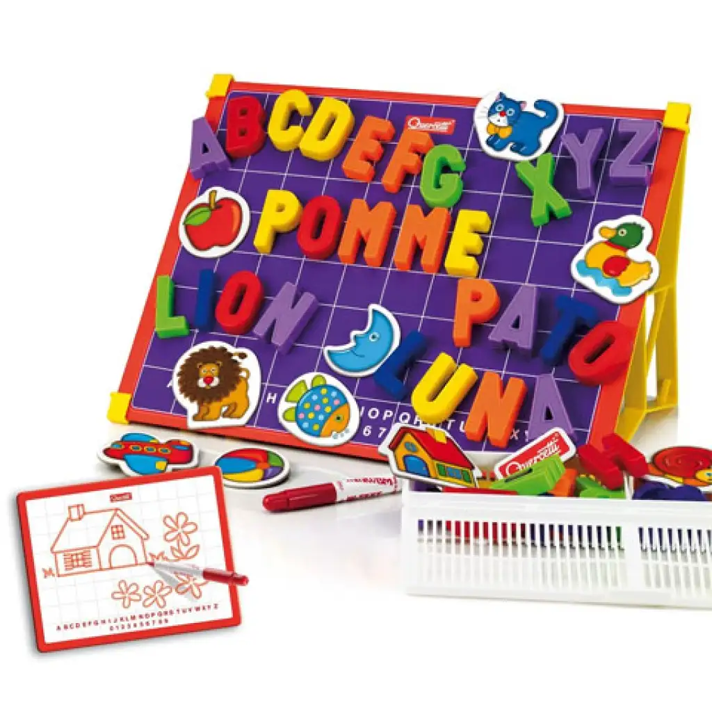 Quercetti: Mágneses tábla nagybetükkel 48 db-os + tartó video