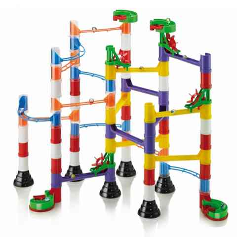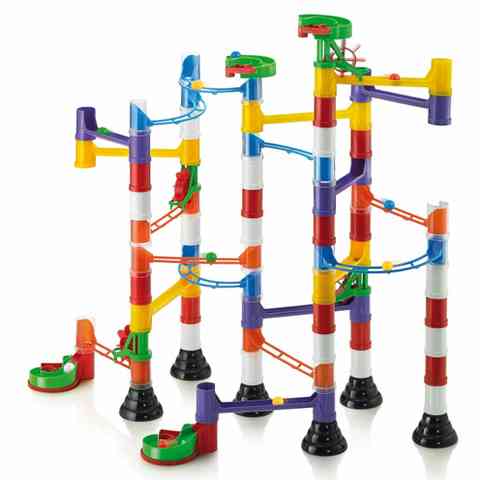 Ez a nagyszerű készlet segítségedre lesz abban, hogy merészebbnél merészebb pályákat építs az aprócska golyók számára. A vidám színű elemeket egymásra építve magas tornyokat tudsz készíteni, amiket különböző hidakkal és csúszdákkal tudsz összekötni, így biztosítva, hogy egy-egy golyó akadály nélkül tudjon megérkezni a célba. Kreativitásod, vizuális készséged, és kézügyességed remekül megdolgoztatja ez a játék, hiszen csak a képzeleted szab határt a annak milyen pályát alkotsz. Kellemes időtöltést!