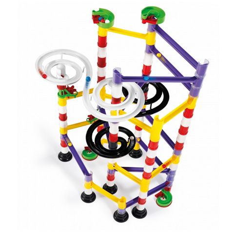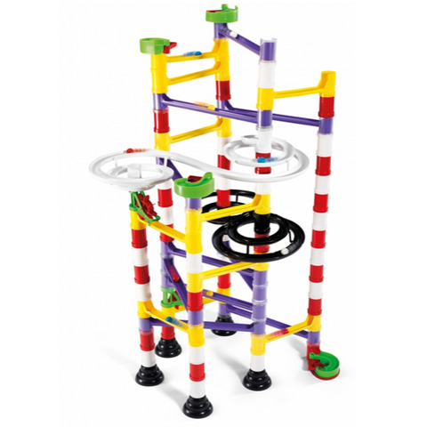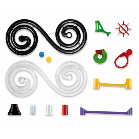 Készítsd el saját golyópályádat! Ez a nagyszerű termék garantáltan a kedvenc játékod lesz. Igazán látványos elemekkel köztük két nagy és izgalmas spirállal egészítheted ki az általad épített magas tornyokat, ezáltal biztosítva a golyók örvénylő száguldását. Ezen kívül csúszdák, hidak, oszlopok kis malmok lesznek segítségedre a véget nem érő, megunhatatlan játék során. Minden elemet úgy alakítottak ki, hogy könnyen egymáshoz csatlakoztathatóak legyenek, így bármilyen variációban össze illesztheted őket. Remek kézügyesség és kreativitás fejlesztő játék.