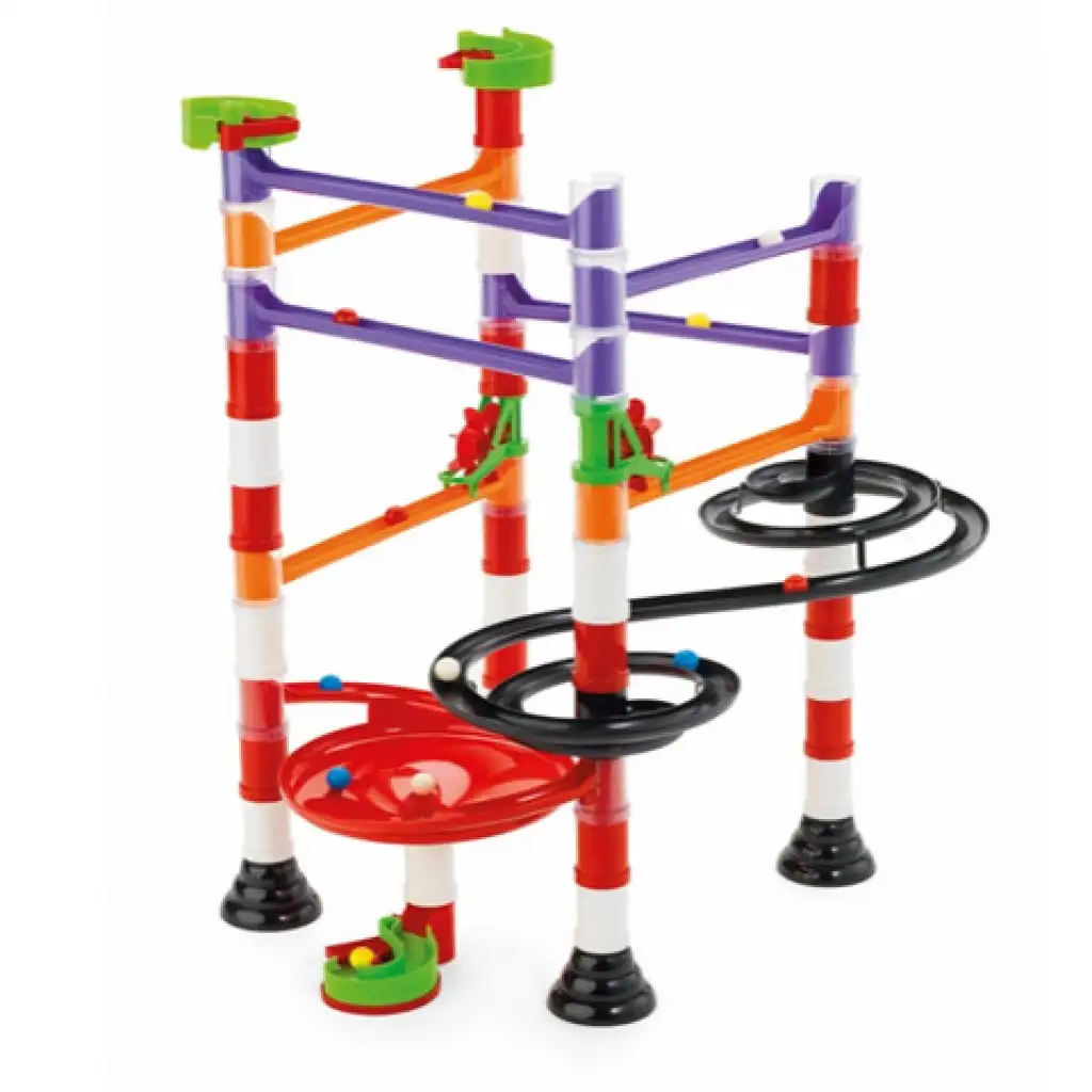 Egy felettébb izgalmas golyós kalandra invitálunk most Téged. Ezzel a nagyszerű készlettel Te magad építhetsz izgalmasabbnál izgalmasabb pályákat, amelyeken azután érdekfeszítő golyó versenyeket rendezhetsz. Láss neki máris! Éld ki kreativitásod, és készíts merész szerkezeteket. A csomagban mindent megtalálsz ami szükséges lehet az alkotás során: a színes elemek, spirálok, csúszdák és mini fogaskerekek segítenek abban, hogy változatos építményeket tudj készíteni.