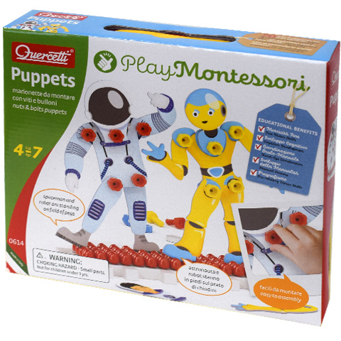 Ezek a nagyszerű bábok erős kartonból készültek, és a gyerekekre van bízva az összeállításuk, amelyben természetesen egy útmutató a segítségükre lesz. A robot és az űrhajós figura kezei és lábai töb ponton is mozgatható, így a gyerekek több száz pózba tudják őket beállítani, így akármilyen jelentet el tudnak velük játszani. A Montessori egy új sorozata a Quercetti fejlesztő játékoknak amit a híres tanító Maria Montessori munkái ihlettek, így olyan játékok és eszközök készülnek, amelyek valóban fejlesztő hatással vannak a gyerekek készségeire.