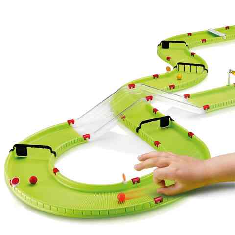A golyóverseny lényege, hogy egy bonyolult és akadályokkal teli pályán kell a lehető legkevesebb pöckölésből körbeküldenünk egy golyót. Ez a nagy versenypálya öt méter hosszan állít elénk éles kanyarokat és leküzdendő akadályokat. És ha esetleg a nyolcvannégy alkotóelem nem lenne elég, akkor nyugodtan variálhatjuk a pályánkat más golyóverseny pálya elemekkel. A pálya különleges felülete lehetővé teszi, hogy a golyók véghelyzetét pontosan számon tudjuk tartani. A játék szét és összeszerelése gyors és egyszerű, akár a gyerekek is elboldogulnak vele. Rajta, kezdődhet a golyóverseny, és győzzön a jobb!
