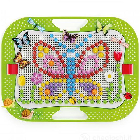 Ez a nagyszerű pötyi első sorban a kislányok számára lesz remek választás, hiszen már a tábla is pillangókkal van díszítve, és a pötyikkel díszíthető táblákon is a virágoké és természetesen a természeté a főszerep. A mutatós, zöld kerettel ellátott tábla díszításéhez több mint háromszáz pötyi áll rendelkezésre, . A Quercetti pötyik már a három éves korosztály számára kiváló választás, hiszen a játék remekül fejleszti a gyerekek kreativitását illetve a finom-motorikus készségeiket.