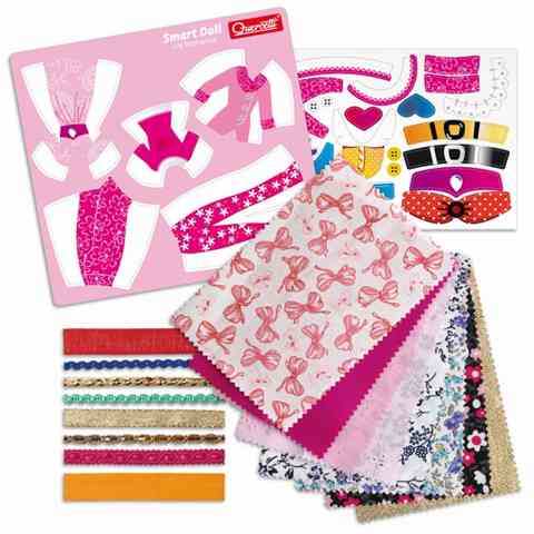 A csomag 1db öltöztethető babát, sablont, anyagot, szalagokat, matricát és használati utasítást tartalmaz!