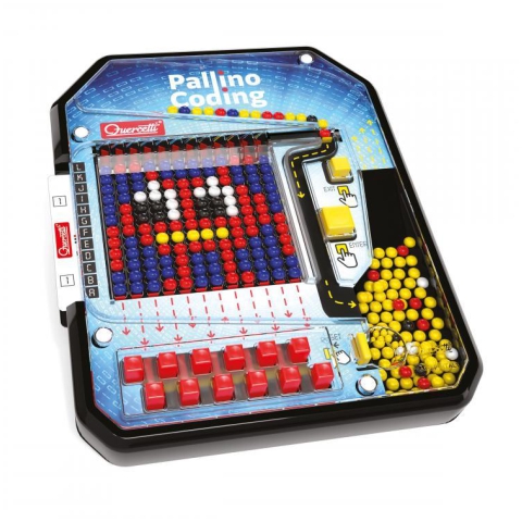 A Quercetti Pallino kódoló oktatójáték segítségével a gyerekek különleges mozaikképeket alkothatnak, miközben játszva sajátíthatják el az analitikus gondolkodás és számítástechnikai ismeretek alapjait. A kódoló játék lényege, hogy a kiválasztott képet kell kirakni a táblában található színes bogyók segítségével úgy, hogy az a végén minden színében megegyezzen a kártyán látható képpel. Ehhez a táblán lévő karokat és gombokat kell majd használniuk és elengedhetetlen a logikus gondolkodás a sikeres végeredmény érdekében. A szett egy biológiailag lebomló csomagolásban érkezik.