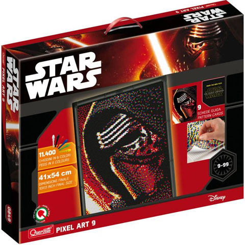 Kylo Ren alighanem az új Star Wars filmek egyik legérdekesebb alakja lesz, és most itt a nagyszerű lehetőség, hogy egy különleges eljárással alkoss képet a fekete ruhás maszkos figuráról több mint tízezer színes pötyi felhasználásával. Ez a pötyi játék egy megdöbbentő meglepetést tartogat számodra, hiszen a mellékelt sablont felhasználva, sikerül minden pötyit a megfelelő helyre raknod, akkor egy bizonyos távolságból szemlélve olyan színes, és részletgazdag képet fogsz kapni, hogy elakad tőle a lélegzeted. A Pixel Art pötyiket egy sablon segítségével kell a táblákba beszurkálnunk, és így a "pointillista" festészethez hasonlóan készíthetünk magunknak egy bámulatos képet.