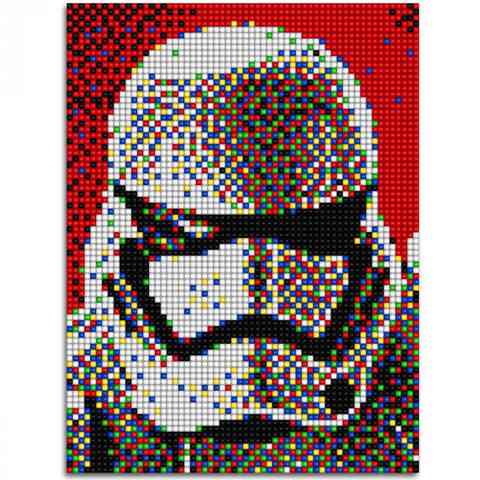 Készítsd el a saját rohamosztagos figurádat, amit ezúttal egy különleges képen jeleníthetsz meg! Csillagok háborúja rajongóként aligha találsz vagányabb díszítést a szobádba, mint ezt a pötyit, ami 5400 darabból áll, azonban az elkészült alkotás egész biztosan tetszeni fog. Ez a pötyi játék egy megdöbbentő meglepetést tartogat számodra, hiszen ha a mellékelt sablont felhasználva sikerül minden pötyit a megfelelő helyre raknod, kirajzolódik rajta a rohamosztagos karakter képe. Helyezd szobád falára a kreatív alkotást!