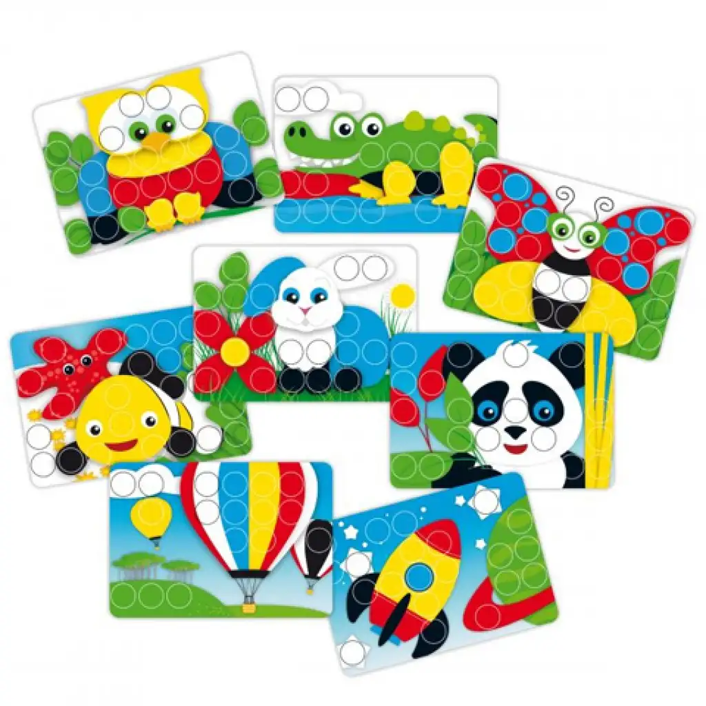 Akár már két éves kortól használatba veheted a készségfejlesztő pötyikészleteket a Pixel Junior szett segítségével. Apró alkatrészeket nem tartalmaz, a kis pötyik 32mm-es óriás szegecsekre lettek cserélve így akár a legkisebbek is játszhatnak vele. Válassz az összesen nyolc különböző színekkel és formákkal megrajzolt háttérsablon közül és alkosd meg pötyik segítségével. A játék a szórakoztatás mellett készségfejlesztő jellemzőkkel is bír, fejleszti a kreativitást, kézügyességet és a mozgás koordinációt egyaránt. Ismerd fel, hogy milyen színű a háttér és válaszd ki a hozzá illő pötyit majd pattintsd be a helyére.