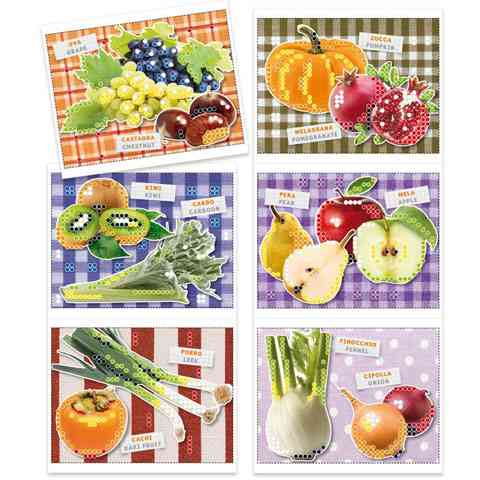 Ha ősz és gyümölcsök, akkor szőlő, kiwi, alma és körte, és még megannyi más finomság, amelyeket mind megtalálod ebben a pötyi játékban, amiben a legfinomabb őszi zöldségek és gyümölcsöket várják, hogy a pötyikkel kidekoráljad.. A játék során a dobozban található hat kép közül az egyiket rá kell illesztened a táblára, és aztán a lyukakkal jelölt helyekre a megfelelő színű pötyiket kell beszúrnod. A játék közben megismerkedhetsz a szezonális zöldségekkel és gyümölcsökkel, amelyek nagyon egészségesek, és finomak. A játék még az idegen nyelv tanulásban is a segítségedre lehet, hiszen az egyes finomságok mellett az angol és az olasz nevük is szerepel.