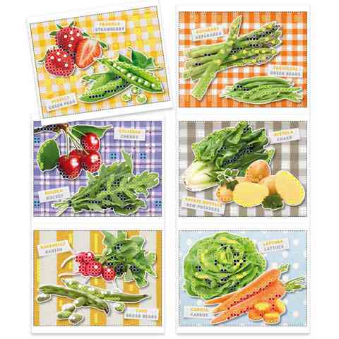 Ismerkedj meg a tavaszi zöldségekkel és gyümölcsökkel ennek a nagyszerű pötyi játéknak a segítségével. A játék során a dobozban található hat kép közül az egyiket rá kell illesztened a táblára, és aztán a lyukakkal jelölt helyekre a megfelelő színű pötyiket kell beszúrnod. A játék során megismerkedhetsz a szezonális zöldségekkel és gyümölcsökkel, amelyek nagyon egészségesek, és finomak. A játék még az idegen nyelv tanulásban is a segítségedre lehet, hiszen az egyes finomságok mellett az angol és az olasz nevük is szerepel.