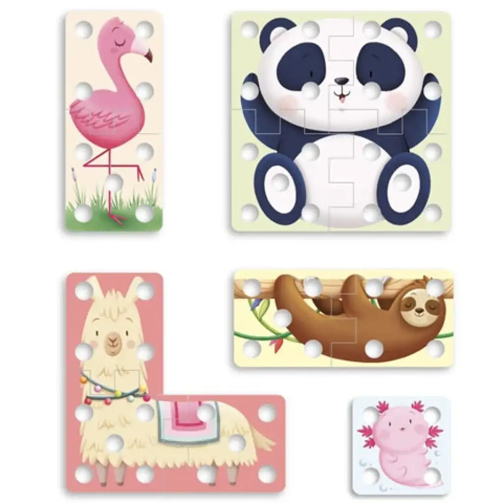 A Play Creativo fűzős puzzle egy különleges kreatív játék, amivel akár már a három év körüli gyerekek is nagyszerűen el tudnak játszani, és az állatos minta egészen biztos, hogy könnyedén felkelti az érdeklődésüket. A játék több ponton is kihívások elé állítja a piciket, hiszen a kiválasztott állathoz első körben egy megfelelő táblát kell készíteni, így kettő vagy több, összeilleszthető lapot kell a megfelelő módon egybekapcsolniuk. Ezután ráhelyezve az állat képét, a kialakított lyukakon keresztül el lehet kezdeni a színes fonal segítségével díszíteni a képet. A játék épp olyan remekül fejleszti a gyerekek kreatív érzékét, mint a finom-motorikus készségeiket.