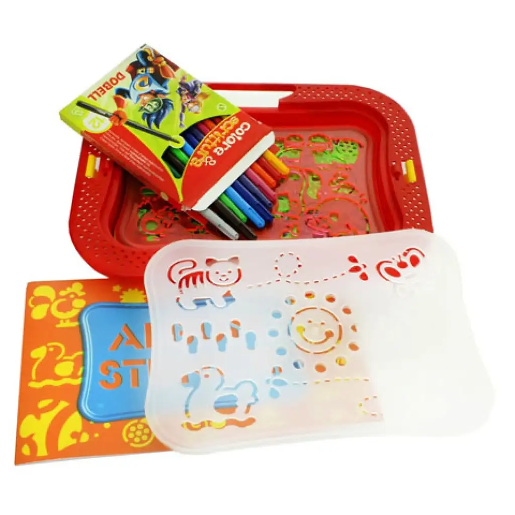 A rajzolás nagyszerű szórakozás minden gyermek részére, és ezt a szuper mókát könnyíti meg a rajzoló sablon. Ennek a készletnek a segítségével egy farmot rajzolhatunk játszi könnyedséggel. A sablonokon találunk kutyát, tehenet, bárányt, és megannyi állatot, továbbá gyümölcsfákat, traktort és mindent ami tényleg része egy igazi tanyavilágnak. A rajzoló sablonok használata igen egyszerű, csak a papírra kell helyeznek, majd a mintákat ügyesen körbe kell rajzolnod egy ceruzával, és már kész is az igazi remekmű.