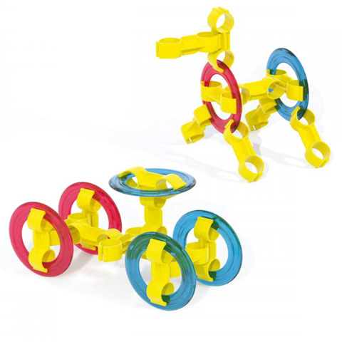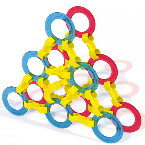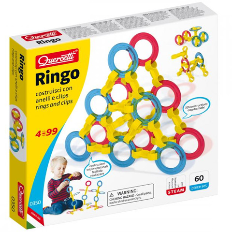 A Quercetti által gyártott Ringo karikás építőjáték egy újdonságnak számító eredeti játék, ami két darab színes műanyag elemből áll: óriási karikákból és egy szettnyi összekötő elemekből amivel csatlakoztatni lehet egymáshoz a darabokat. Ezekkel megalkothatunk egy világot fantasztikus három dimenziós figurákból. A játék direkt szét van darabolni, hogy az összerakásában alkotói szabadságot biztosítson a kisgyerekeknek és garantáltan felhőtlen időtöltés legyen akár órákon keresztül is.