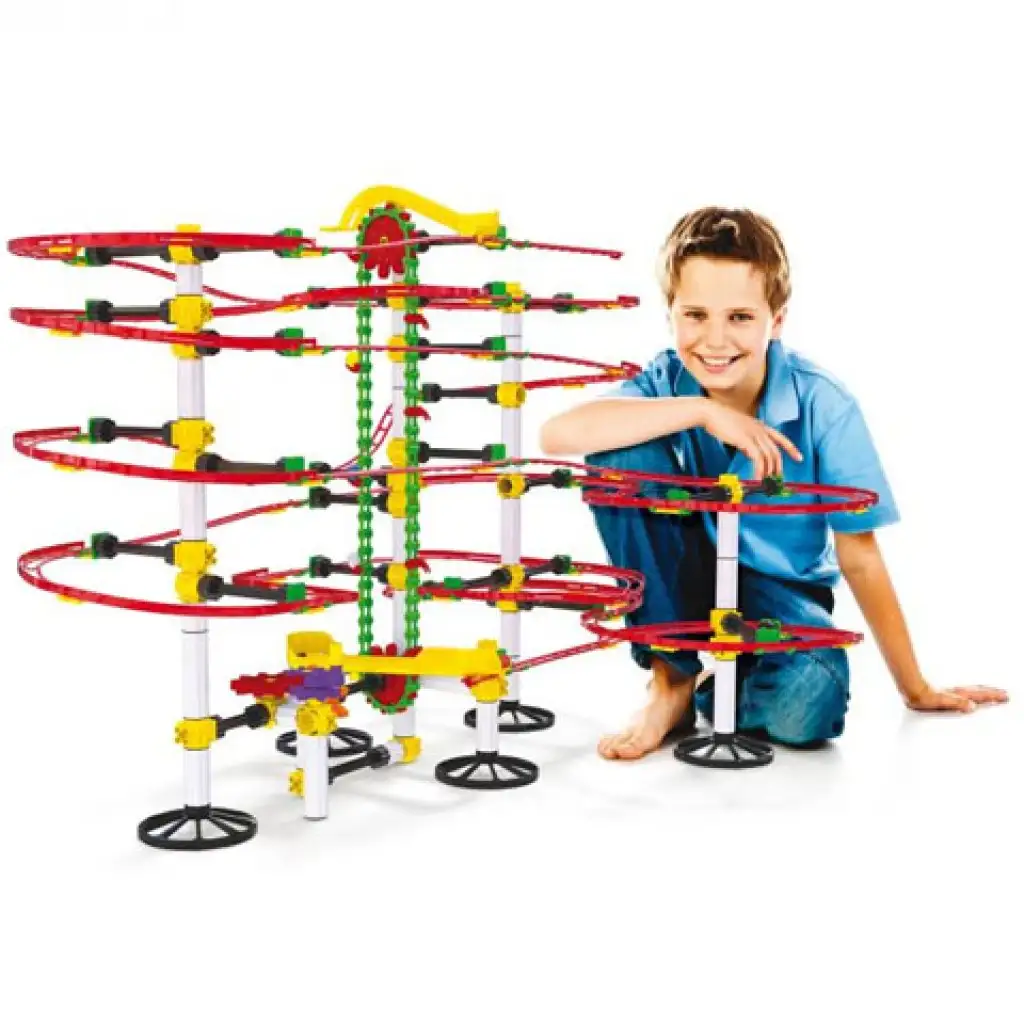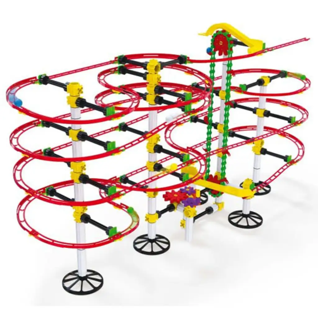 Ebben a csomagban tizenkét méternyi pályaelem várja, hogy a lehető legérdekesebb pályát alkosd meg belőle úgy, hogy a legurított golyó végig a pályán maradjon. Bár az ember nem is gondolná, de a játék olyan alapvető fizikát tanít számunkra, mint a gravitáció, a sebesség és a súrlódás, valamint a centripetális erő. Külön nagyszerű élményeket tartogat a gyerekek számára az emelőlift, aminek a segítségével a golyókat a pálya végéről újra a pálya elejére lehet juttatni. Rendezz egy versenyt a készletben található tíz darab golyó számára.