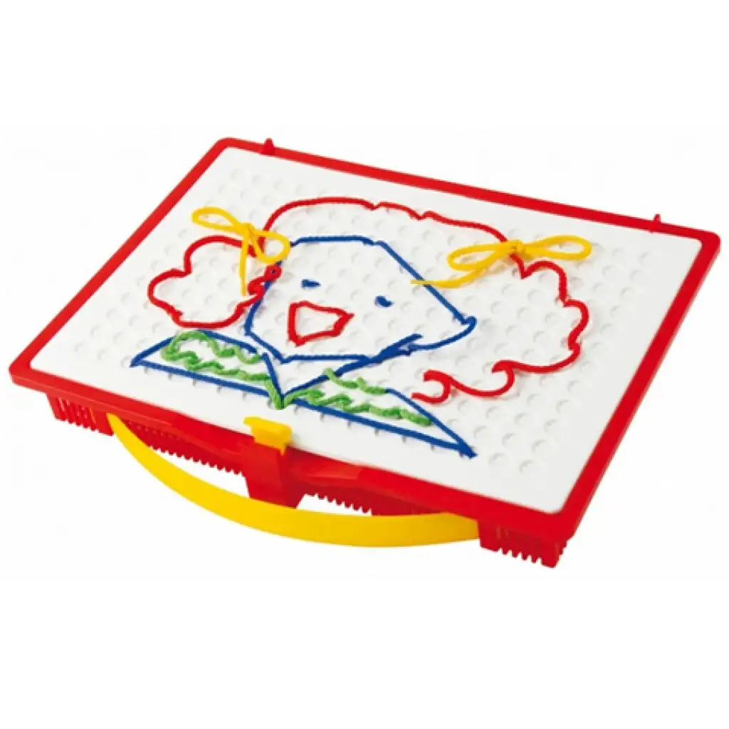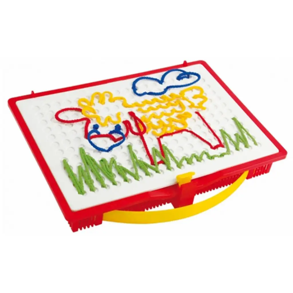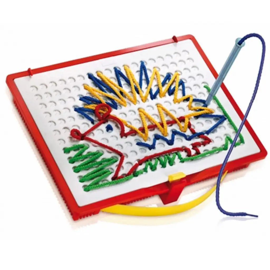 Ötletes, modern fűzős játék óvodásoknak, de itthon a kisiskolás gyermekeim is szívesen játszanak vele. 18 db sablon segítségével fonalakból tudnak sokféle képet készíteni. Fejleszti a finommotorikát, íráskészséget, szem- és kéz koordinációt, térlátást.