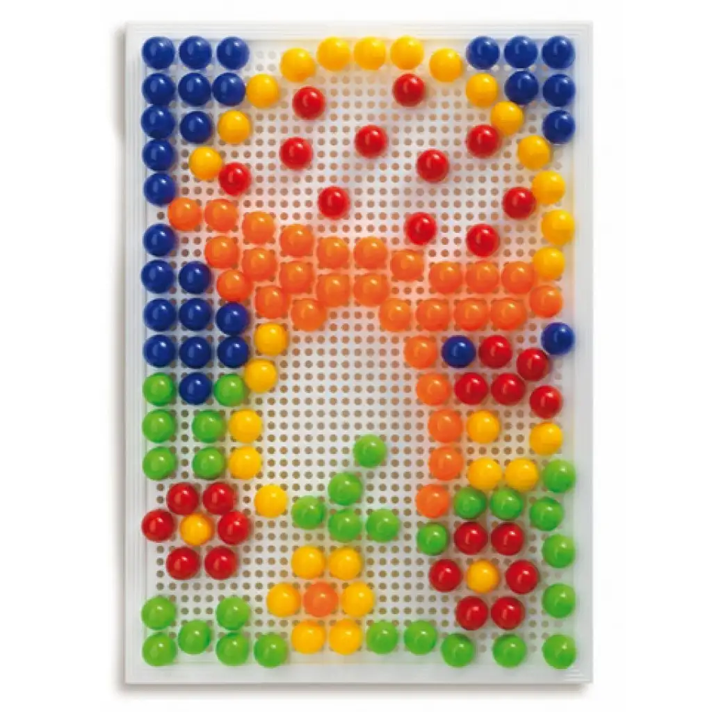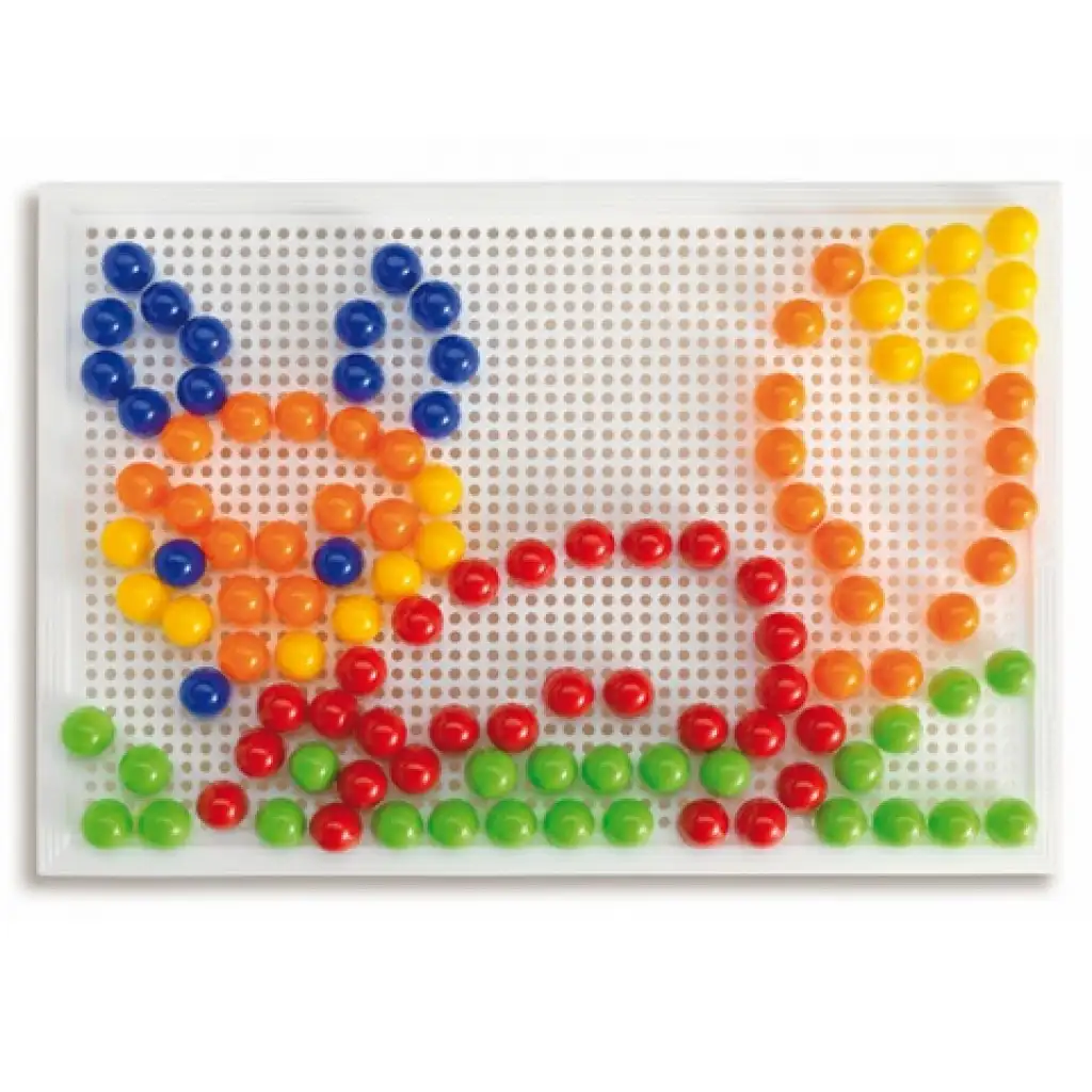 Ez a 150 darab színes pötyit tartalmazó csomag garantáltan önfeledt kikapcsolódást ígér számodra. Az átlátszó műanyag tervező táblán akár saját ötleteid is megalkothatod, de ha szeretnéd segítségül hívhatod a mellékelt mintákkal teli albumot is. A pötyik kialakítása a kisebbek kezébe is tökéletesen passzol, így könnyedén tudják majd a helyükre szúrni őket. Ha elkészültél egy képpel, bátran mutasd meg mindenkinek mit készítettél, sőt ha szeretnéd még a falra is felakaszthatod a remekművedet. A keretet ugyanis ellátták egy praktikus füllel is aminek köszönhetően fel is akaszthatod, de akár hordozni is könnyen tudod majd.