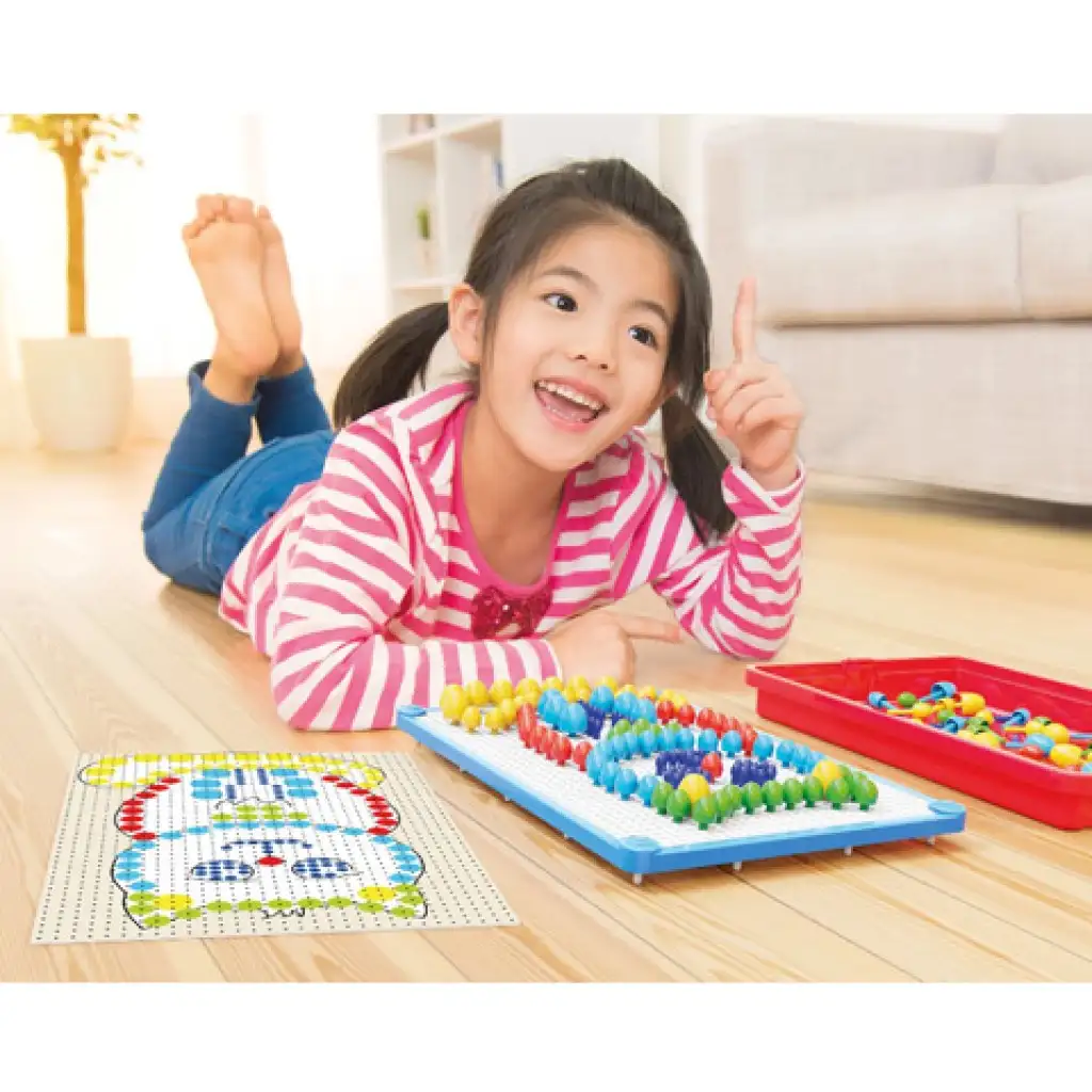 Egy igazán színes és izgalmas játékra invitálunk most Téged. Ezzel a nagyszerű hordozható készlettel garantáltan nem lesznek unalmasak a játékkal töltött perceid, ráadásul utazás során sem kell megválnod kedvenc pötyijeidtől. A csomagban minden eszközt megtalálsz ami az alkotáshoz szükséges lehet: a munka felületként használható műanyag táblát ami alá behelyezve a sablont csak követned kell a mintákat, hiszen megmutatják neked hová milyen színű pötyit kell leszúrnod. Azonban, ha a saját ötleteid szeretnéd kivitelezni azt is bátran megteheted, csak a képzeleted szab határt annak milyen képeket készítesz el a pötyik segítségével. Jó szórakozást!
