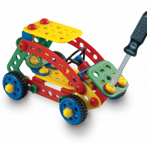 Ezzel a nagyszerű készlettel jobbnál jobb szerkezeteket lesz lehetőséged építeni. A praktikus dobozkában a különböző méretű és formájú elemeken kívül csavarhúzút, imubszkulcsot, csavarokat és anyákat is találsz, így minden adott az alkotáshoz az, hogy milyen formában illeszted őket össze csak a képzeleteden múlik. Minden darab tervezésénél gondosan odafigyeltek, hogy pontosan passzoljanak egymáshoz, tehát számtalan sík és akár 3 dimenziós remekművet is készíthetsz. Ha végeztél a játékkal mindent belepakolhatsz a szerszámos ládádba amit le is tudsz zárni, és még füllel is rendelkezik.