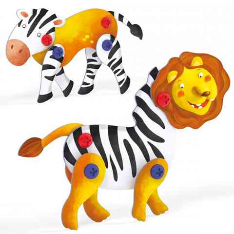 Ebben a nagyszerű szórakoztató játékban a főszerepet a kézügyesség kapta, hiszen a szettben található állatok testrészeit bármilyen formában össze szerelhetjük a csavarok és anyák segítségével. Építsd fel az oroszlánt, a zebrát vagy hozz létre egy képzeletbeli hibridet belőlük. A játék nagyban hozzájárul a gyermekek kézügyességének fejlődéséhez, elősegítik a kéz motoros koordinációjának finomítását. Bővítsd ki szetted más állatokkal is, hogy végtelen módon variálhasd a végtagokat, adj az oroszlánnak zebra fejet vagy a zebrának oroszlán lábakat.