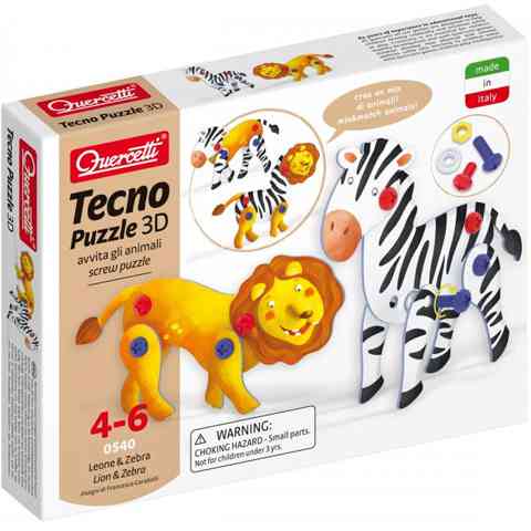 Quercetti: Tecno oroszlános és zebrás 3D PuzzleQuercetti: Tecno oroszlános és zebrás 3D Puzzle