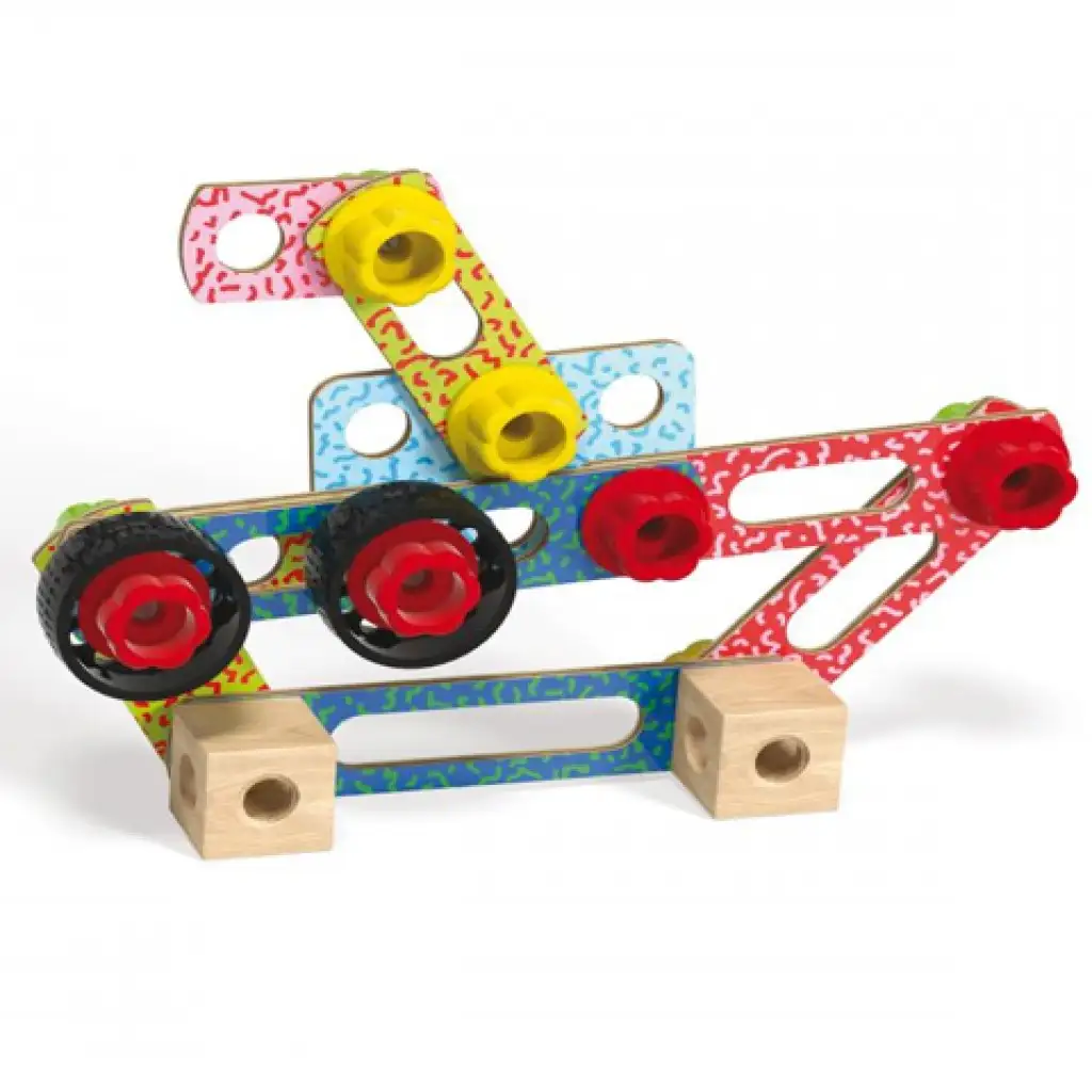 Használd fel ezeket az erős és ütésálló műanyag csavarokat és alátéteket, hogy több ezerféleképpen megalkosd a kedvenc dolgaidat. Ebben mindent megtalálsz ahhoz hogy robotokat, furcsa szerzeteket, épületeket és bármi mást megalkoss. A határ a csillagos ég és a kreativitásod. Fa és műanyag darabkái vibráló színekkel van kidíszítve ami felkelti a gyermekek kreatív gondolkodásvágyát és a kézügyességüknek a fejlődését. A mechanikai alapvető elveit is megtanítja nekik ez a kis egyszerű játék. Minden egyes darabot Olaszországban készítettek szigorú minőségi elvárásokat teljesítve és külön odafigyelést szentelve a biztonságos környezetre és az környezetünk megóvására.
