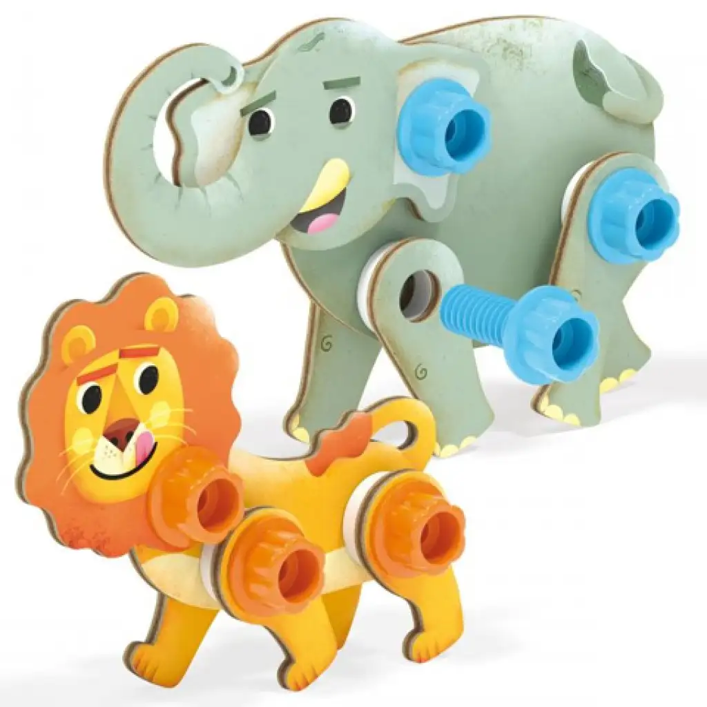 Ebben a játékban a kedvenc állataidat nagyon sok különböző módon egyberakhatod ezekkel az erős anyacsavarokkal és csavarokkal. Jó szórakozás a kreativitásodat és a képzelőerődet használni, hogy újféle állatokat alkoss a fejek, testek, farkak és lábak felcserélésével. A figurák bármilyen pózban állva maradnak és a szobád díszei lehetnek. Minden egyes darabot 100%-osan Olaszországban készítettek magas minőségi elvárásoknak megfelelve és plusz odafigyelést szentelve a biztonságnak és a környezettudatosságnak.