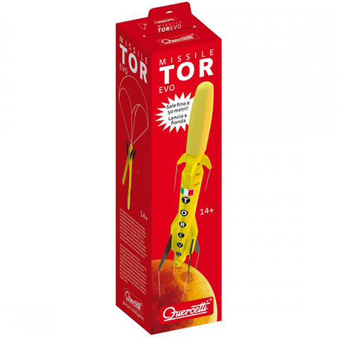 A Quercetti legendás Tor Evo rakétáját aligha kell bárkinek is bemutatni, hiszem már az 1960-as évek óta több millió darabbal próbálták már meghódítani a világűrt a gyerekek. Ezt a Tor Evo rakétát teljesen újjátervezték, egy új, modern kialakítást kapott, aminek az eredménye, hogy összehasonlíthatatlanul magasabbra lehet felküldeni, ráadásul az ejtőernyő, mint egy új, funkcionálisabb megoldás lehetővé teszi a tökéletes és sérülés mentes visszatérést a magasból. Tehát nincs más dolguk a gyerekeknek, mint kipróbálni ezt az új rakétát, és az nyer, aki magasabbra tudja fellőni!