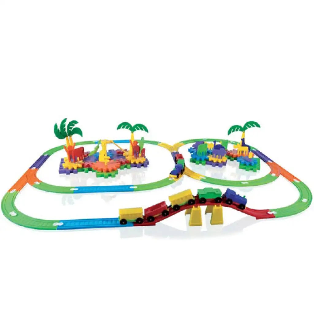 Építs egy igazán egyedi szafari vonatot magadnak. Ebben a csomagban mindent megtalálsz ami ehhez a vaállalkozáshoz szükséges. Néhány pálmafát, és egzotikus vadállatot, hogy valódi szafari hangulatot tudjál teremteni, és persze megtalálod benne a vonatokat is, valamint a sínpályát amin a vonatok haladni tudnak. A sineket szabadon variálhatod a váltók, az Y elágazások és a felüljárók segítségével, így csak a képzeleted szab határt annak, hgy a vonatok milyen kacskaringós utakon járják be a vadállatokkal benépesített parkot.