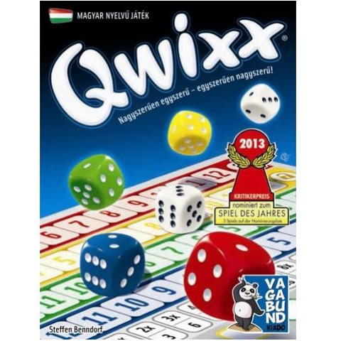 A Qwixx egy izgalmas, gyors és pörgős kockajáték, ami az egész családnak nagyszerű szórakozást kínál és mindenkit izgalomban tart! Minden játékos kap egy pontozólapot és egy íróeszközt. Dobnod kell a dobókockákkal, majd a szabály szerint jelöld be a lapodon az adott dobókocka színével megegyező sorban dobott értéket. Minden játékos a saját lapján megpróbál annyi számot bejelölni (beikszelni) a 4 színes sorban, amennyit csak tud. Egy adott színű sorban több jelölésért több pont jár. Akinek a legtöbb pont jön ki a játék végén, megnyeri a játékot. Általában van egy kis választási, módosítási lehetőséged. Eleinte lehet taktikázni, a vége felé már sok szerencse is kell, hogy nyerj. Ennek ellenére nagyon izgalmas játék! Az utóbbi években bezsepelt egy csomó nemzetközi díjat!