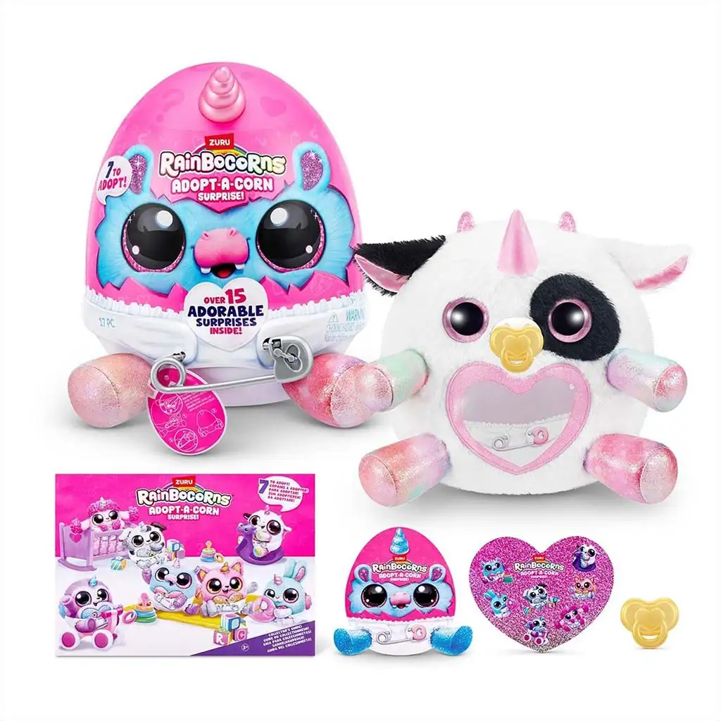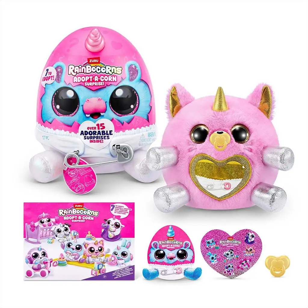 A Rainbocorns: Adopt-a-Corn sorozatban hét különböző plüss bébikornist lehet összegyűjteni, így mindenki megtalálhatja a saját kedvencét. A figurák egyedi megjelenésűek és mindegyikük különböző stílusú, színvilágú és díszítésű, ami még izgalmasabbá teszi a gyűjtögetést. Ezek a kis figurák tökéletesek arra, hogy a gyerekek saját kis fantáziavilágot építsenek fel, miközben gondoskodnak az örökbefogadott kis bébikornisukról.
