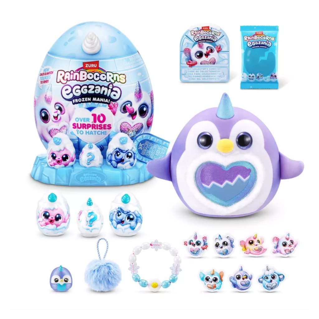 A Rainbocorns Eggzania Frozen Mania meglepetés tojás minden kibontásnál garantáltan mosolyt csal az arcokra. A nagy tojásban egy puha, kedves plüss lakik, mellette pedig további kis tojások rejtőznek, tele izgalmas meglepetésekkel. A kiegészítők között gyűjthető minifigurák, ékszerkészítő elemek és apró játékok találhatók, amelyek tovább fokozzák az élményt.