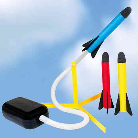 A rakéták kilövése remek szórakozás amivel a gyerekek a szabadban tölthetik az idejüket, és egy kicsit talán a fizika törvényeivel is ismerkedhetnek, még ha azt észre sem veszik. A készletben minden megtalálható, ami a rakéta kilövéshez kelleni fog, és rakétából máris három darabot, így akár tripla játékélményben lehet része a gyerekeknek is. A Használta rendkívül egyszerű, csak fel kell állítani a pumpát és az állványt, majd rá kell húzni egy rakétát a pumpa csőre és erősen rátaposni a pumpára, ami messzire kilövi majd a rakétát.