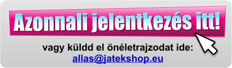 Ha szeretnél egy jó csapatban, kellemes légkörben dolgozni tisztességes fizetésért, Magyarország egyik piacvezető játékkereskedésében, akkor nálunk a helyed!