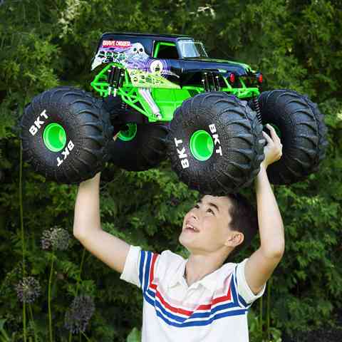 A Grave Digger az egyik legnépszerűbb járgány az egész Monster Jam mezőnyben, és most egy elképesztően vagány távirányítós kocsiként a gyerekek is kipróbálhatják. A Mega Grave Digger 1:6-os méretaránya egy közel hatvan centis igazi, monster truck-ot eredményez, ami elképesztően nagy gumiabroncsokat kapott, ami a rugós felfüggesztéseknek köszönhetően lehetővé teszi, hogy a legextrémebb akadályokat is könnyedén legyőzze, akárcsak az igazi változat. A járgány vezérlését egy 2,4 GHz-es távirányító adja, ami kényelmes és könnyen használható már egy 4-5 éves gyerek számára is akár hetvenöt méter távolságból is.