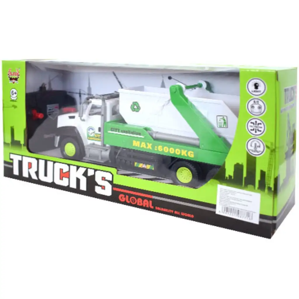 RC távirányítós konténer szállító autó zöld színben fénnyel