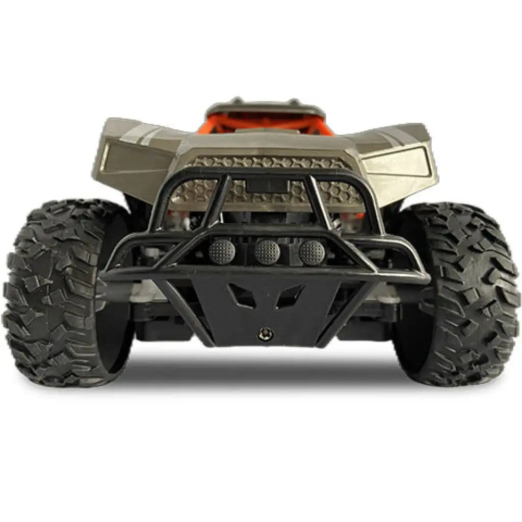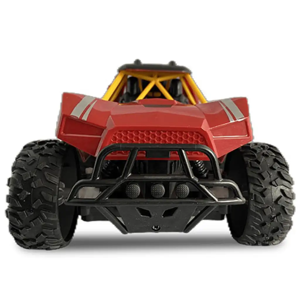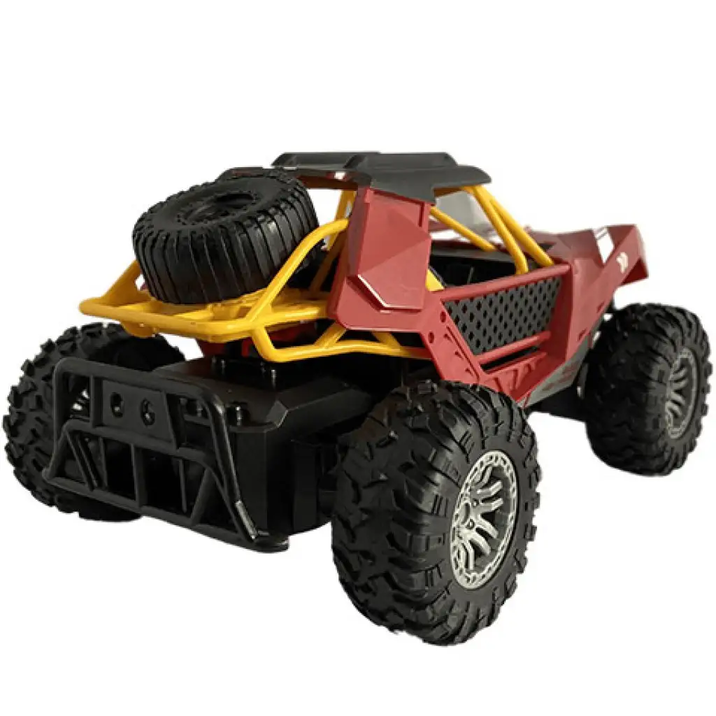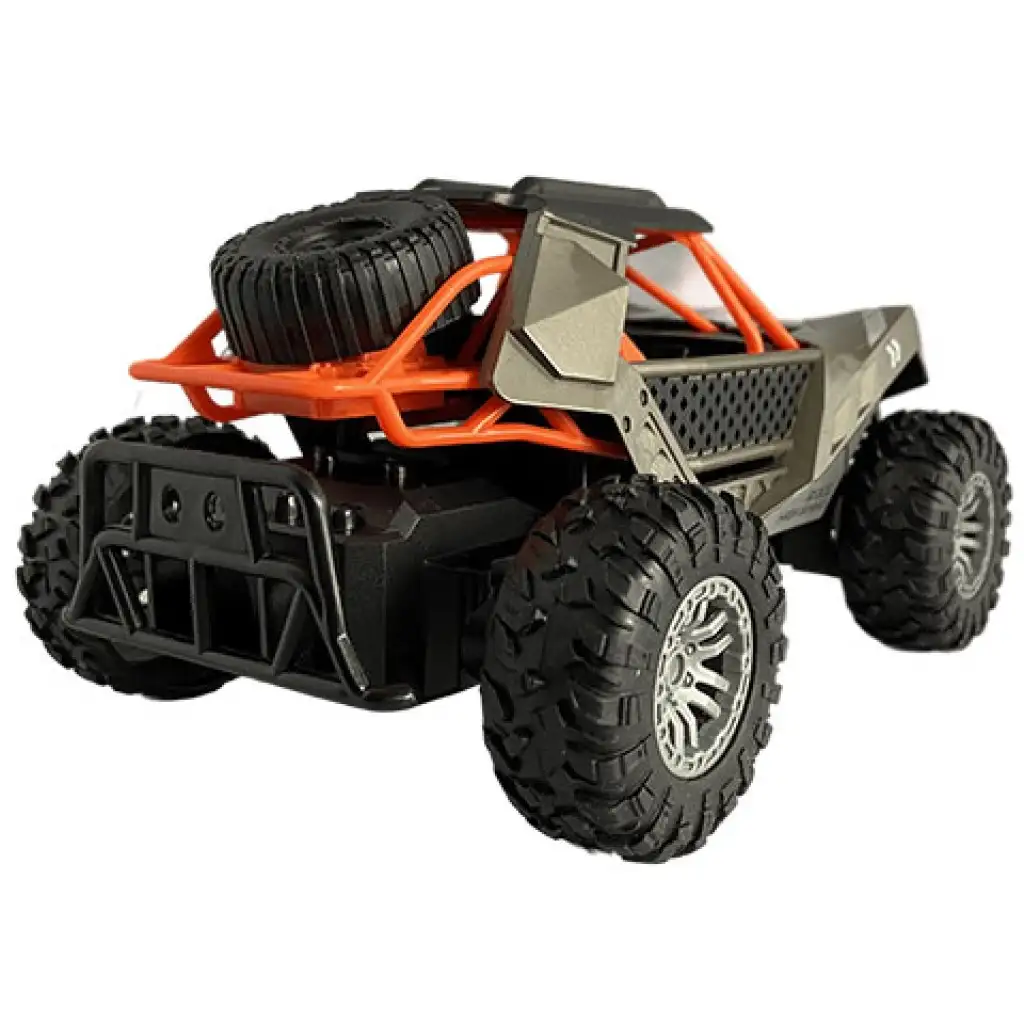 Szerezz be gyermeked számára egy menő terepjáró autót amely fényeffektekkel is rendelkezik és a bukócsöves kialakítás még izgalmasabbá varázsolja a megjelenését. A terepjáró a hátsókerék meghajtásának köszönhetően kiválóan kormányozható a szettben található távirányító segítségével. Az autó kimondottan terepre tervezett kerekeinek és rugós felfüggesztésének köszönhetően bármely terepen megállja a helyét legyen szó akár aszfaltról, betonról, homokról vagy füves útszakaszról egyaránt. A beépített 4,8V-os akkumulátor USB kábellel tölthető és egyetlen töltéssel akár 20perces játékidő érhető el.
