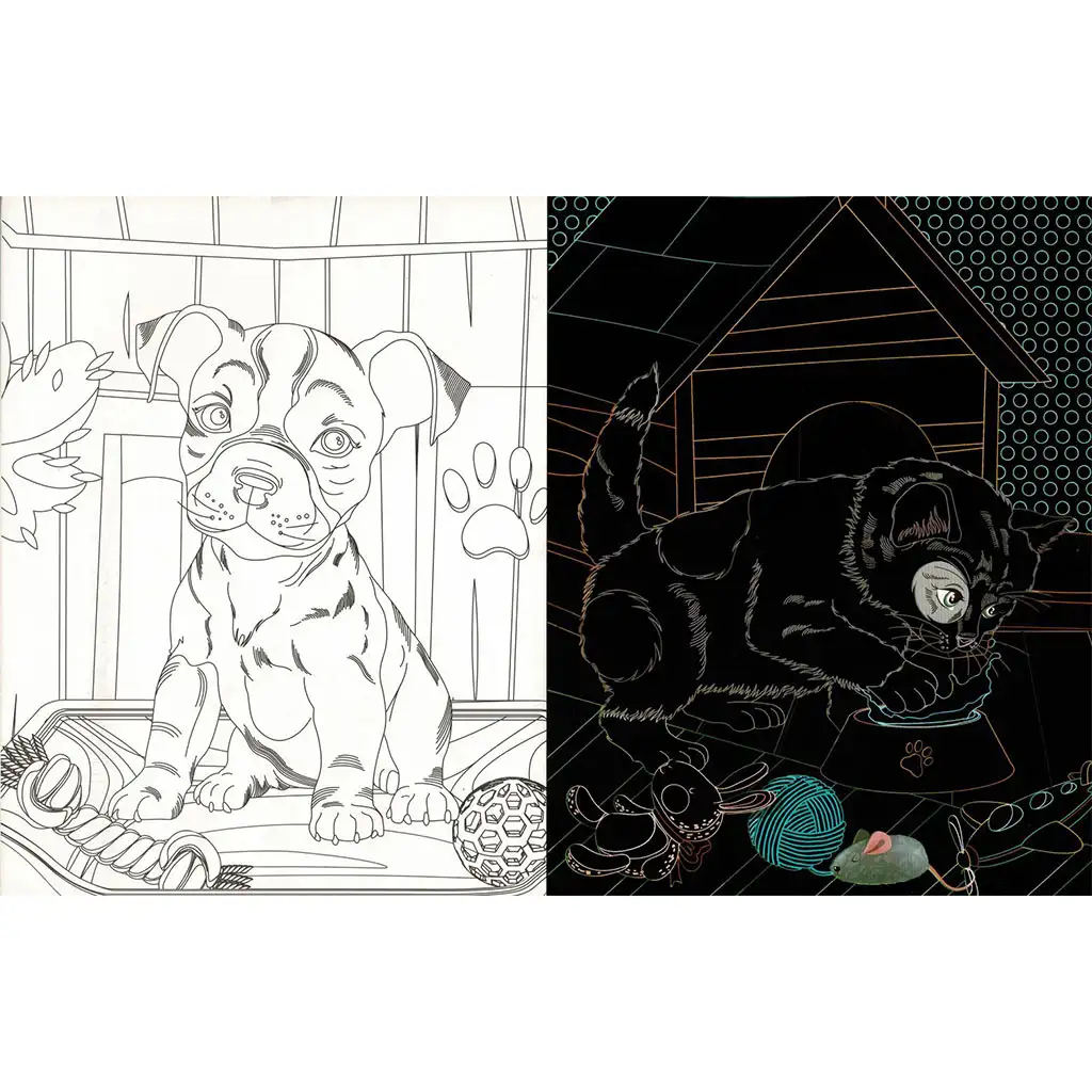 Rejtőzködő kedvencek - Kifestőfüzet kaparós és színezős oldalakkalRejtőzködő kedvencek - Kifestőfüzet kaparós és színezős oldalakkal