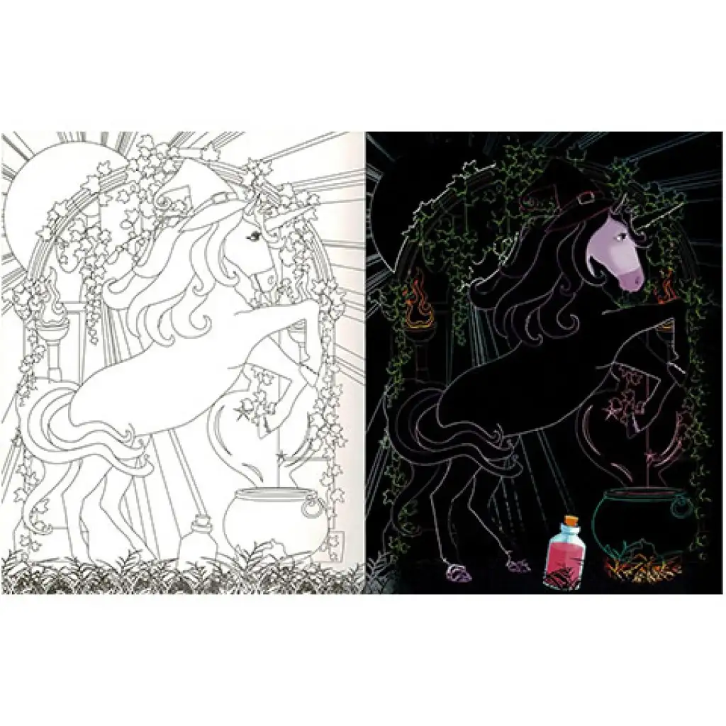 Rejtőzködő unikornisok - Kifestőfüzet kaparós és színezős oldalakkalRejtőzködő unikornisok - Kifestőfüzet kaparós és színezős oldalakkal