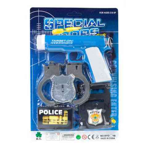 Ebben a remek szettben mindent megtalálsz ahhoz, hogy valódi rendőr lehess. Természetesen a legfontosabb kiegészítő a fegyver, melyhez még golyókat is tartalmaz a készlet, amiket a pisztolyba töltve valóban kilőhetsz. A szett emellett még tartalmaz bilincset, jelvényt és egy felfűzhető tartót is. A készlet tökéletesen alkalmas jelmez kiegészítőnek, de önmagában is remek játékot biztosít a gyerekeknek. Lássuk, hogy Te hány rablót csípsz fülön!