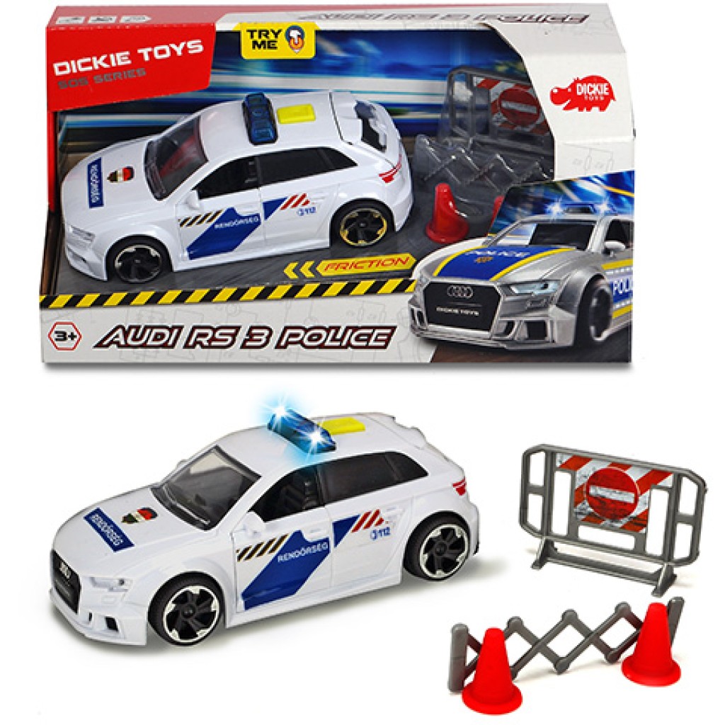 Az Audi magyarországi gyárából időnként egy-egy rendőrautó is kigördül, ami a magyar rendőság járműflottáját erősíti. Ez a sportos Audi RS3 első sorban az autópályákon teljesít szolgálatot, ami érthető is, hiszen nem nagyon van esély meglógni a több száz lóerős motorral felszerelt járőrkocsi elől, ami mellé a gyereket a forgalom eltereléséhez szükséges kiegészítőket is kapnak. A Dickie Toys kisautói az élethű festésük és a részletgazdag kialakításuk mellett fényekkel és hangokkal teszik még izgalmasabbá a gyerekek számára a játékélményt.