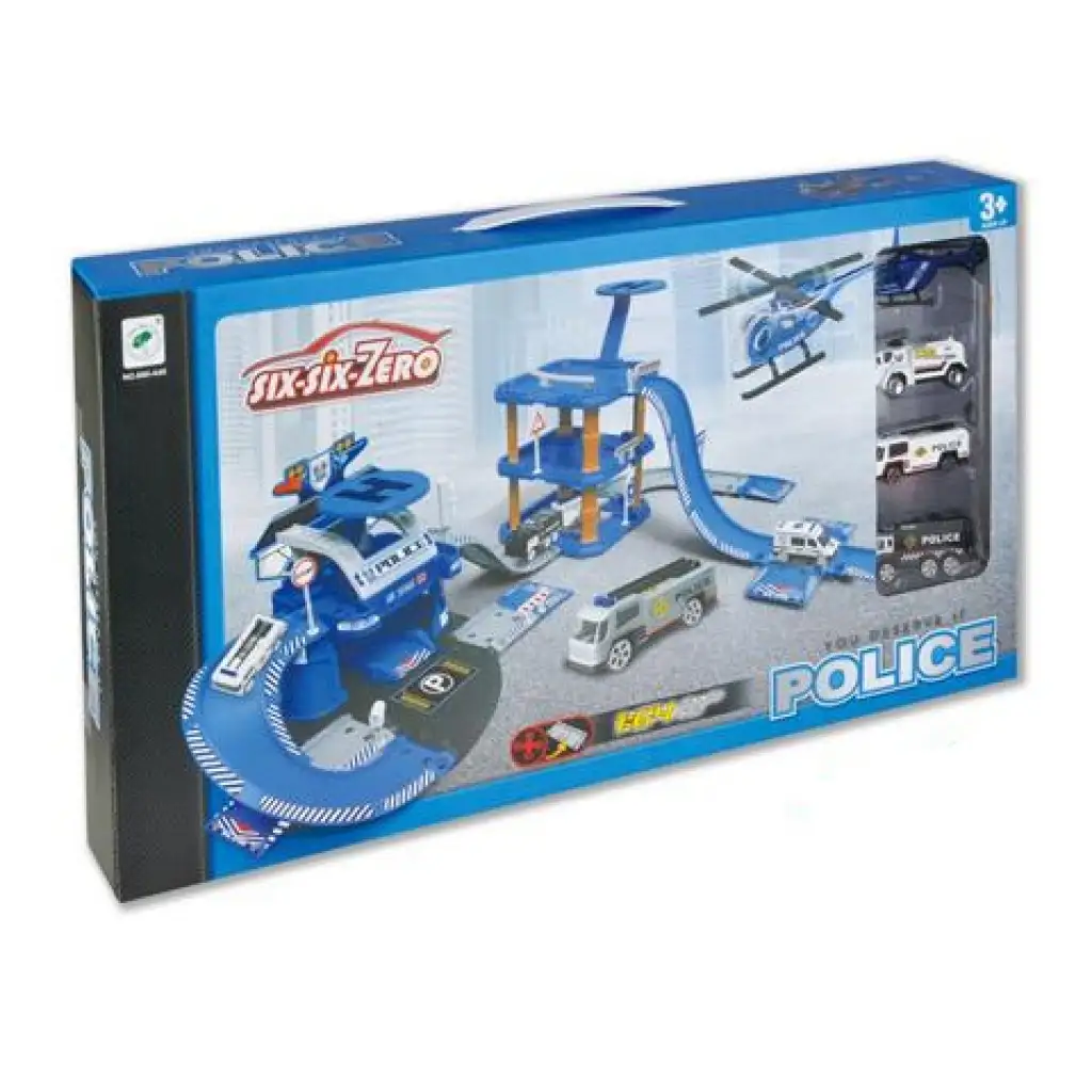 A rendőrség élete mozgalmas és izgalmas, ebbe pedig most gyermeked is betekintést nyerhet ezzel a parkolóházzal, mellyel rengeteg játékban lehet része. A szettben egy háromszintes parkoló található meg, melynek tetején egy helikopter leszálló is megtalálható, amihez még egy helikopter is tartozik. A parkolóház másik felén egy rendőrségi állomás található, ami rendkívül részletes kialakítást kapott, valamint ennek a tetején is megtalálható egy helikopter leszálló. A szetthez még 3 rendőrségi autó is tartozik, amikkel már egyből kezdődhet is a játék.