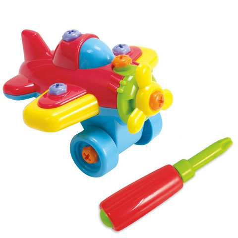 Készülj fel a felszállásra! Azonban a biztonságos repülés alapvető feltétele a műszakilag megbízható állapotban lévő repülőgép, így a felszállás előtt ellenőrizz le minden csavart, és ha kell húzzál rajtuk egy kicsit. Ha minden oké, kezdődhet a felszállás. Ez a járgány több helyen is csavarokat tartalmaz, amelyekhez passzol a készletben található csavarhúzó, így kényelmesen tekerhetsz minden csavaron néhány fordulatot. A játék fejleszti a finom motorikus készséget és a szem-kéz koordinációt.
