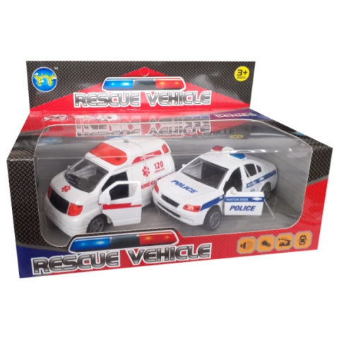 Rescue Vehicle 2db-os mentő és rendőrautó szett fénnyel és hanggalRescue Vehicle 2db-os mentő és rendőrautó szett fénnyel és hanggal