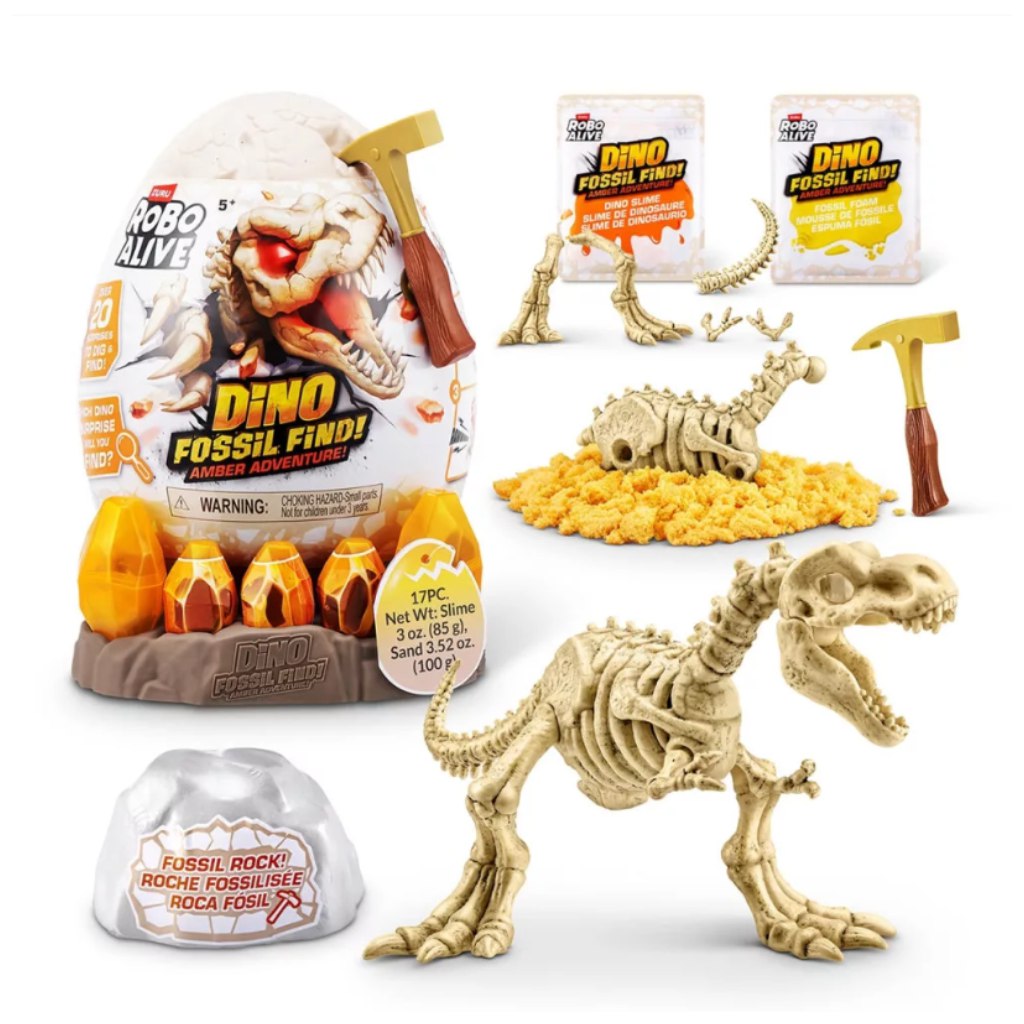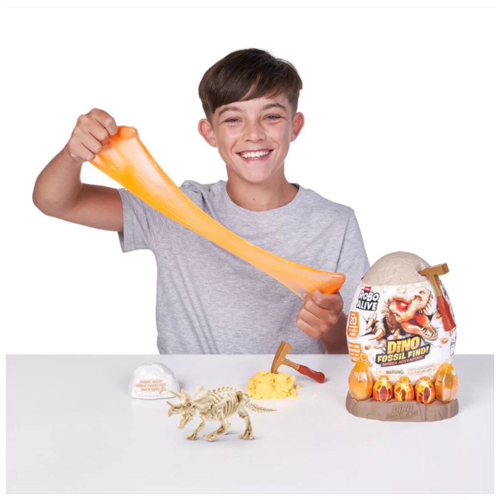 Fedezd fel a múlt titkait a Robo Alive dinó fosszília – Borostyán kaland szettel! Készülj egy izgalmas ásatásra, ahol kőzet- és homokrétegeken kell átküzdened magad, mire előtárulnak a dinoszaurusz ősi maradványai. A slime-láva különleges csavar a kalandban: világít, nyúlik és még izgalmasabbá teszi a feltárást.