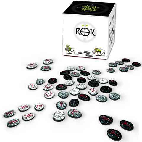 A Rök egyben hangulatos, kiváló minőségű társasjáték is, amelyben a játékosok rúnajelekkel vésett, egyedi kavicsokat dobnak az asztal közepére, és igyekeznek villámgyorsan minél több összeillő párt begyűjteni közülük.