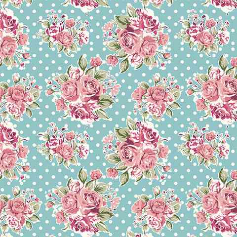 Rózsák kék pöttyös alapon csomagolópapír 100x70cm