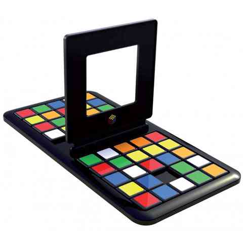 A Rubik Race egy nagyszerű kétszemélyes logikai társasjáték, amelyben a játékosoknak nem csak penge éles logikára és kiváló megfigyelőkészségre lesz szükségük, hanem fürge kezekre is. A játékot szétnyitva két tologatós játék tárul fel előttünk. Mindkét félen színes lapocskákat tudunk tologatni egy ötször ötös felosztásban. A játékhoz tartozik egy keverő rész is apró kockákkal, amit alaposan megrázva kikeverhetjük magunknak és ellenfelünknek a feladványt. Ezután a színes lapokat tologatva a tábla középső háromszor hármas részén kell kiraknunk a keverőben kijött megoldást. Ha kész vagyunk, akkor az elválasztót lehajtva jelezhetjük az ellenfélnek, hogy végeztünk, és egyben ellenőrizhetjük, hogy a megoldásunk valóban jó.