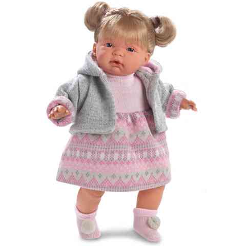 Ruth szőke síró baba szürke kardigánban 38 cmRuth szőke síró baba szürke kardigánban 38 cm