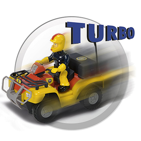 A népszerű mesefilm sorozat főhőse Samuel "Sam" Peyton-Jones, az igazi tűzoltó, akinek bátorsága messze földön híres, számtalan alkalommal menti ki az égő házból a bennrekedt embereket. Azonban Sam nem csak tűzeseteknél dolgozik, hanem hegyi mentés, vagy épp barlangba szorult túrázókon kell segítenie. Ilyen helyekre nem mehet a megszokott nagy piros tűzoltó autóval, hanem előkerül a kis quad, ami könnyen megbirkózik a nehéz tereppel. A 16 cm-es járművet egy kétcsatornás távirányító segítségével vezérelhetjük, aminek a kialakítsa során figyelembe vették, hogy a kisgyerekek is kényelmesen tudják használni.